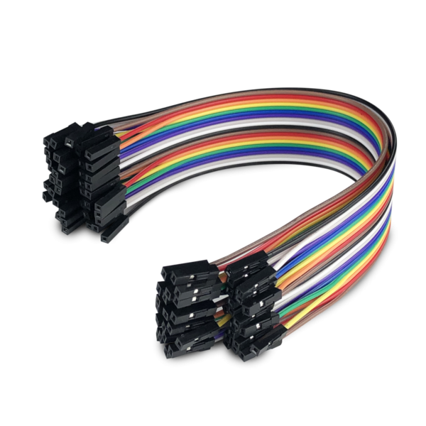 Jumpers Fêmea/Fêmea são cabos com receptáculos de conexão em ambas as extremidades, usados para ligar diretamente pinos ou headers em dispositivos eletrônicos.